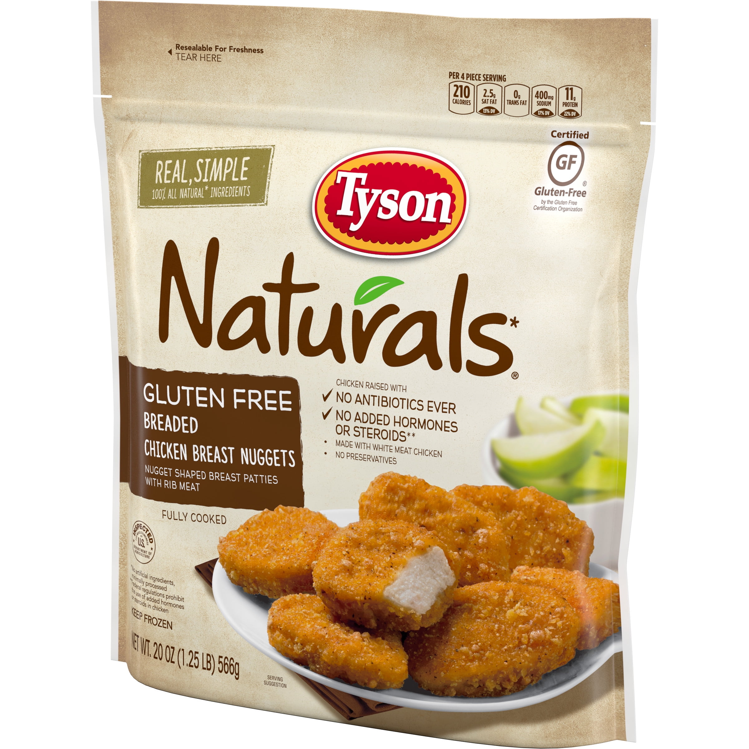 Tyson Naturals Gluten Free Breaded Chicken Breast Nuggets 1 25 Lb Bag Frozen Walmart Com